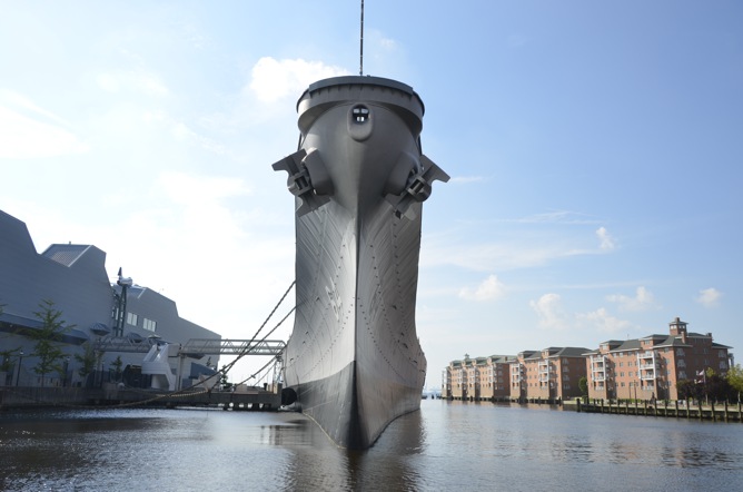 戦艦そのものは超デカイので、全てにおいて超満足出来ます。艦首がノーフォークのビル群向いているので(ノーフォークは結構ビルが密集してて大都市の趣がある)なんだか映画のワンシーンのようで非常に絵になる。