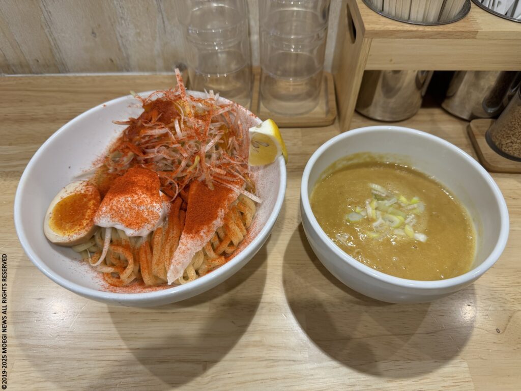 そして出てきたのが、上記画像のなかなか芸術性の高いつけ麵である。
