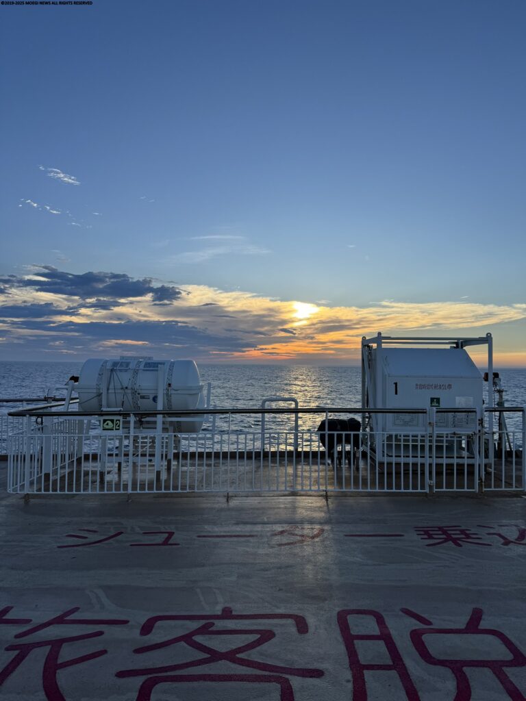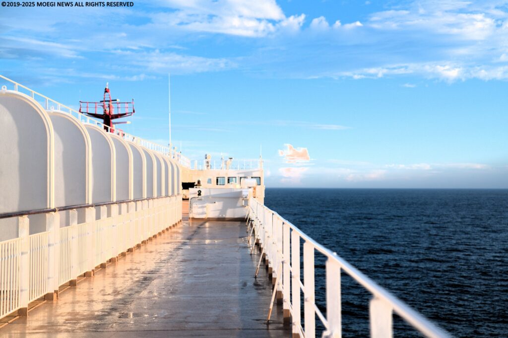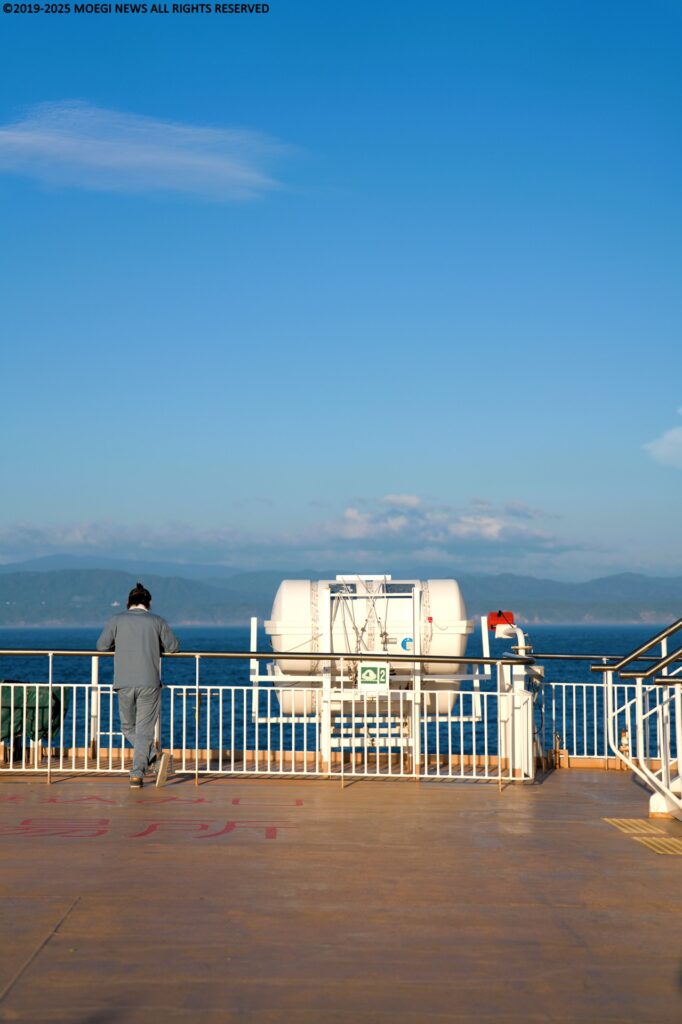 常に陸が見える航路なので、かなり安心感がある。陸地が見えるエリアに行けば、大抵携帯電波を拾えるのも利点だ。