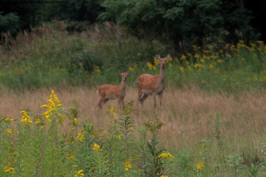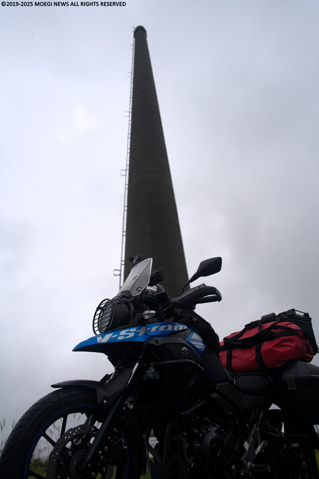 ここで初めて野生生物に遭遇。鹿の家族が原っぱで食事をしていた。煙突自体、明らかに超巨大でスケール感がおかしいのだが、周辺が静かすぎて少し恐怖を感じる。