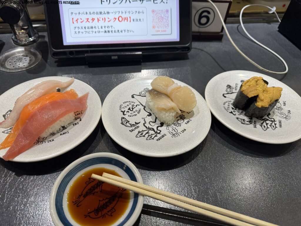 うに、ほたて、サーモンとそれぞれ選択肢がいくつかあるのがさすが北海道。全て圧巻のうまさ。旅先の回転すしでの感動は富山のキトキト寿司以来か。前々日、長崎のローカル最強回転すし「若竹丸」を逃がしていただけに大満足。